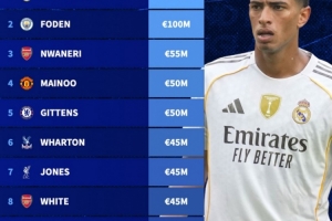 北京时间2025年10月3日讯 英格兰公布了最新一期球队名单,德转也盘点了本次未能入选的球员身价榜(受伤球员除外),具体如下: