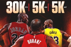 style='color:red;' href=/qiudui/lanqiu/23146.html>北京时间2025年12月24日讯 在昨天和 style='color:red;' href=/qiudui/lanqiu/9.html>国王的比赛中,杜兰特拿到了个人的第5000次助攻,达成了个人30000分、5000篮板、5000助攻的里程碑。他是NBA历史上第六位、同时也是第三快达成此成就的球员(1147场比赛,仅次于乔丹960场和 style='color:red;' href=/qiuyuan/zuqiu/924.html >詹姆斯1107场)。