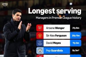 英超执教一家俱乐部时间榜:温格、弗格森前两名,阿尔特塔第十