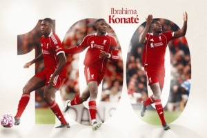 style='color:red;' href=/qiudui/zuqiu/32.html>利物浦官方也通过社媒晒出纪念海报祝贺:“科纳特在今晚达成了英超100场里程碑。”
