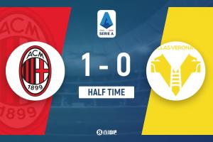 半场-AC米兰暂1-0维罗纳 普利西奇半场补时破门双方半场1射正