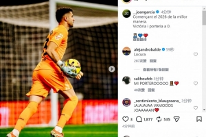 霍安· style='color:red;' href=/qiuyuan/zuqiu/157.html >加西亚社媒晒出比赛照片,庆祝球队取胜,他写道:“以最好的方式开启2026年,胜利+零封。”