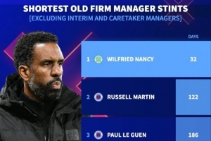 南希上任仅32天便被解雇,是凯尔特人/流浪者历史任期最短主帅