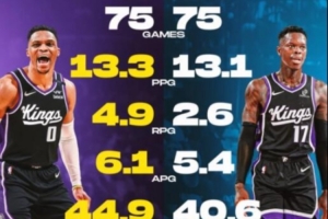 国王新赛季双控!威少上赛季场均13.3分6.1助 施罗德13.1分5.4助