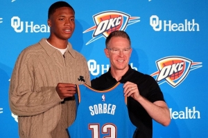 索伯现年19岁,身高2米08,体重113公斤,臂展约2米29,司职中锋/大前锋,在去年选秀大会首轮第15顺位被 style='color:red;' href=/qiudui/lanqiu/1.html>雷霆选中。