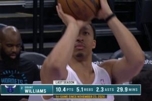style='color:red;' href=/qiudui/lanqiu/29.html>黄蜂VS style='color:red;' href=/qiudui/lanqiu/15.html>爵士,转播方晒图, style='color:red;' href=/qiudui/lanqiu/29.html>黄蜂球员格兰特-威廉姆斯今天复出上演赛季首秀。